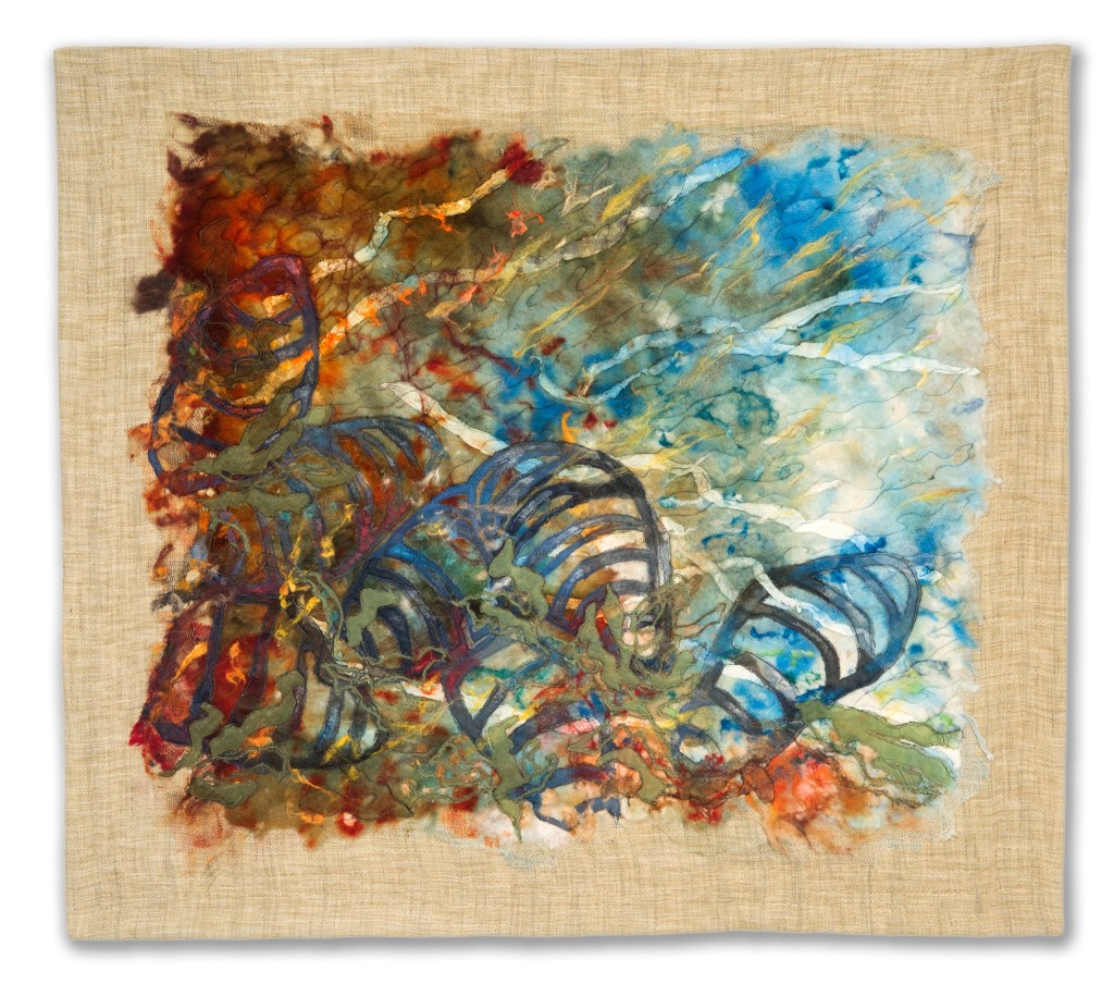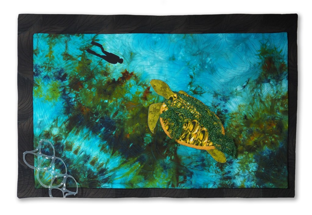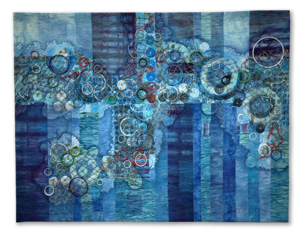 Created as a group exhibit to shine a light on the issues facing the Pacific Ocean today, Shifting Tides is a collection of work by 45 artists chosen from the seven Pacific-facing regions of SAQA. Curated by renowned textile artist Ann Johnston, the exhibit offers a variation of style and context about the plight of oceans and the communities they support.
