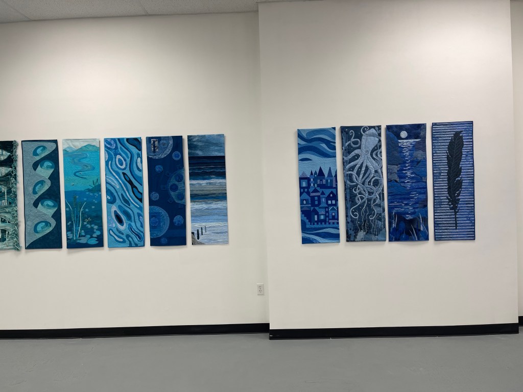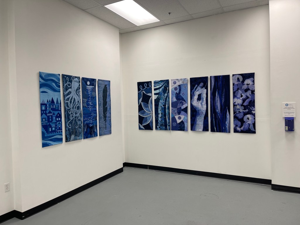 A prism bends light – taking in white light, refracting it, and revealing a mind-boggling spectrum of color. Prism Play: A Full Spectrum of Art Quilts, vibrates with color. It allows gallery visitors to view a vibrant spectrum of color almost as though they were standing inside a prism. Working with the Joen Wolfrom color tool, participating artists submitted monochromatic work that, together, represents the full spectrum from cool yellow through green to blue, and on to violet, red, and orange, ending in warm yellow. The exhibition includes 62 art quilts representing the work of 46 SAQA Northern Californnia/Northern Nevada artists.